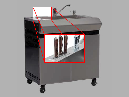 Pulire dopo un grande barbecue sarà un gioco da ragazzi con questo lavello in acciaio inox 304, completo di rubinetto dispenser per sapone e blocco coltelli.