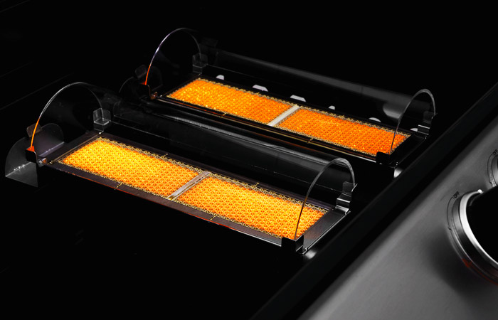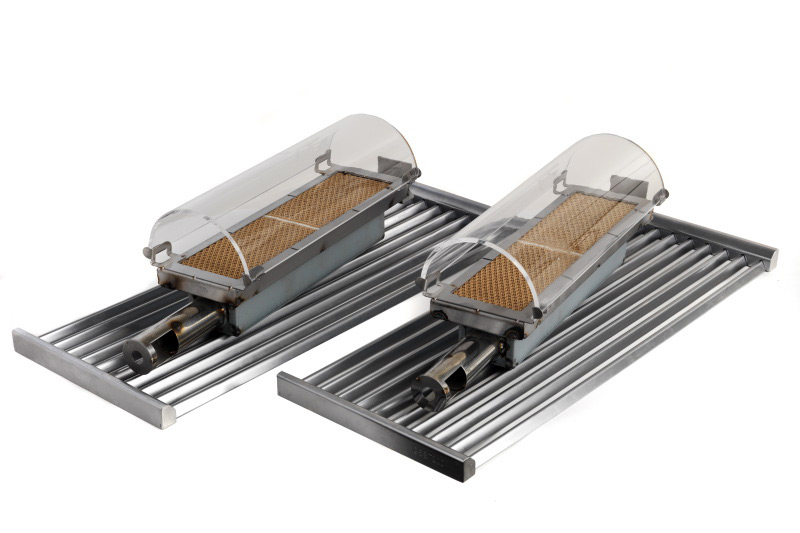 Turbo Elite a gas Gpl o metano 2 fuochi con bruciatori in ceramica e cupolino al quarzo radiante e piastre e griglie in acciaio.
