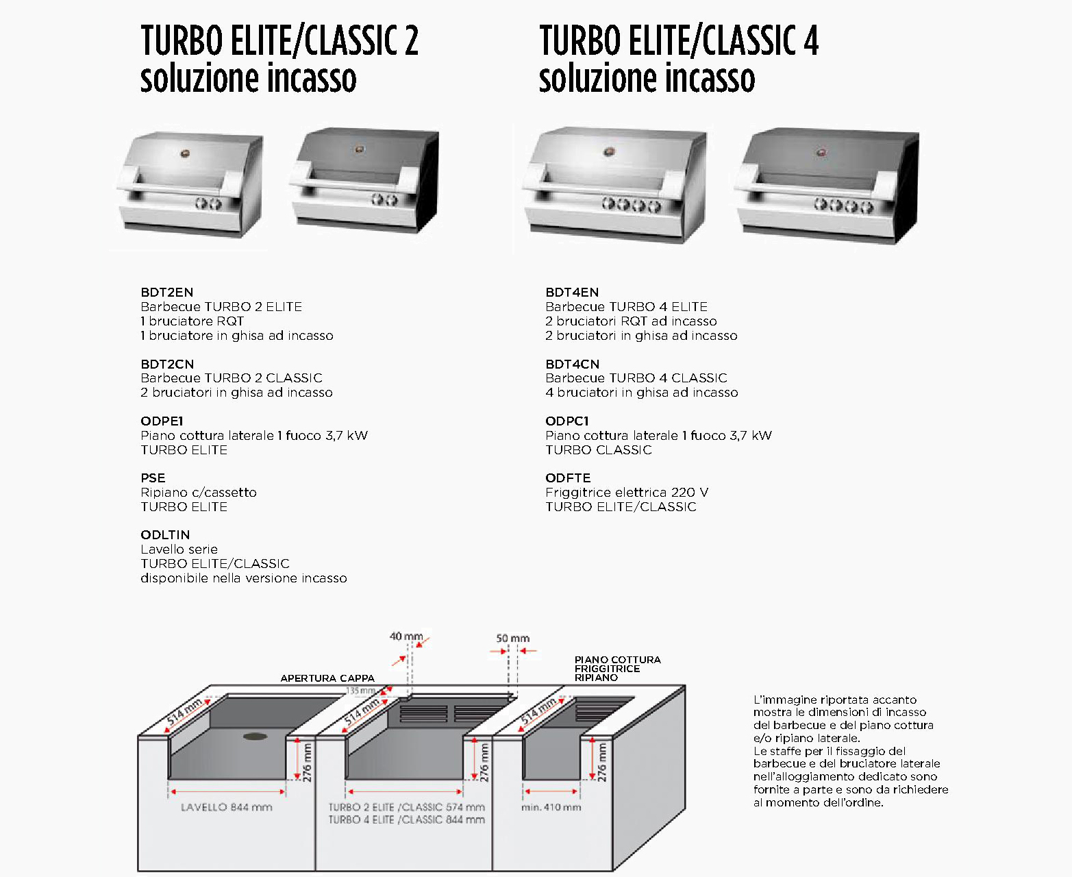 Barbecue Turbo 4 Classic con cappa forno da incasso e da appoggio