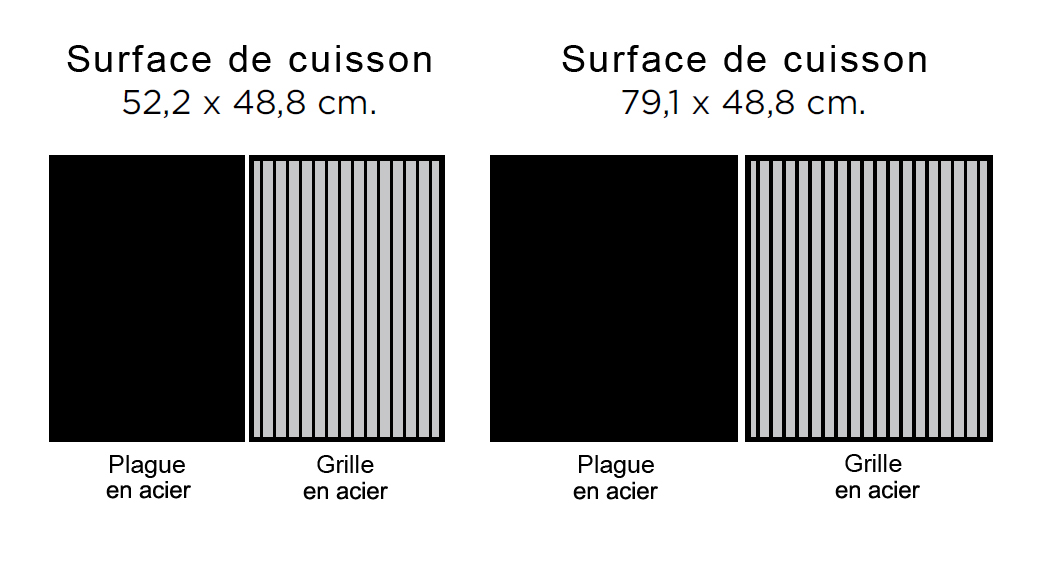 La griglia e la piastra sono in acciaio inox certificate per il contatto alimentare .