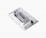 Friggitrice elettrica da 220 V, contenente 2 lt. d’olio e dotata di termostato di sicurezza con coperchio in acciaio inox.